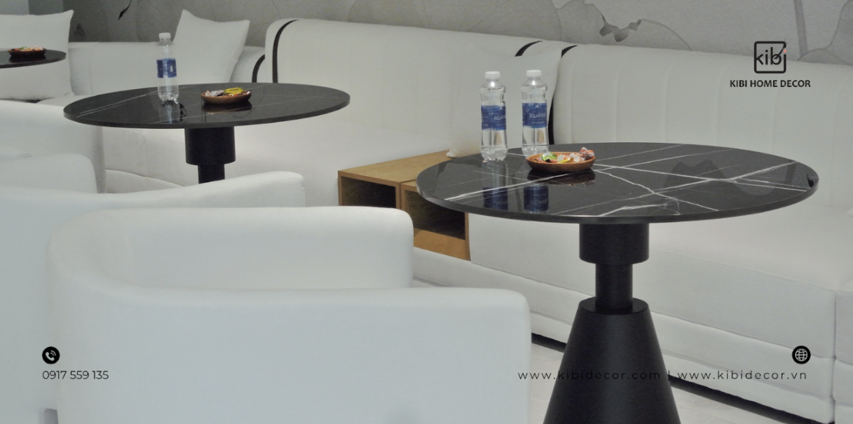• Bàn trà đồng bộ: thiết kế hiện đại, mặt bàn thanh thoát, form dáng gọn nhưng sang, kết hợp hoàn hảo với sofa trắng để tạo ra một tổng thể liền lạc.